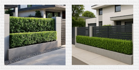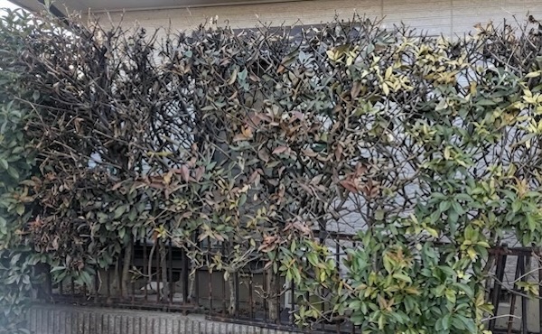 お互いに気まずい思いをしたくないという配慮から、境界線沿いに常緑樹のレッドロビンとローズマリーを組み合わせた生け垣を設置することにしました。